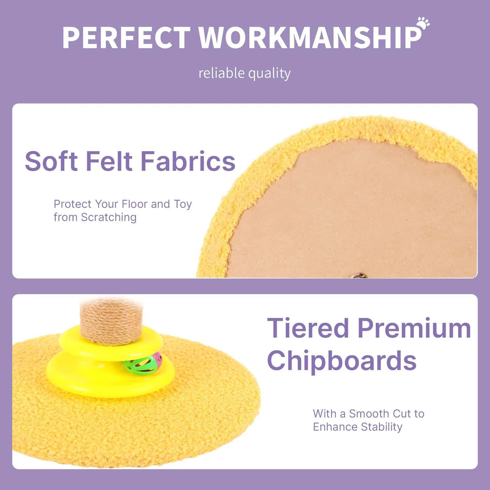 • Decorative Cat Furniture:Natural wood tones and warm bright yellow color can match your home decor perfectly. It is not only a playground for cats, but also a stylish furniture for decorating your home, you can put this cat scratching post in the hallway, balcony or near the corner, beautiful and unobtrusive.