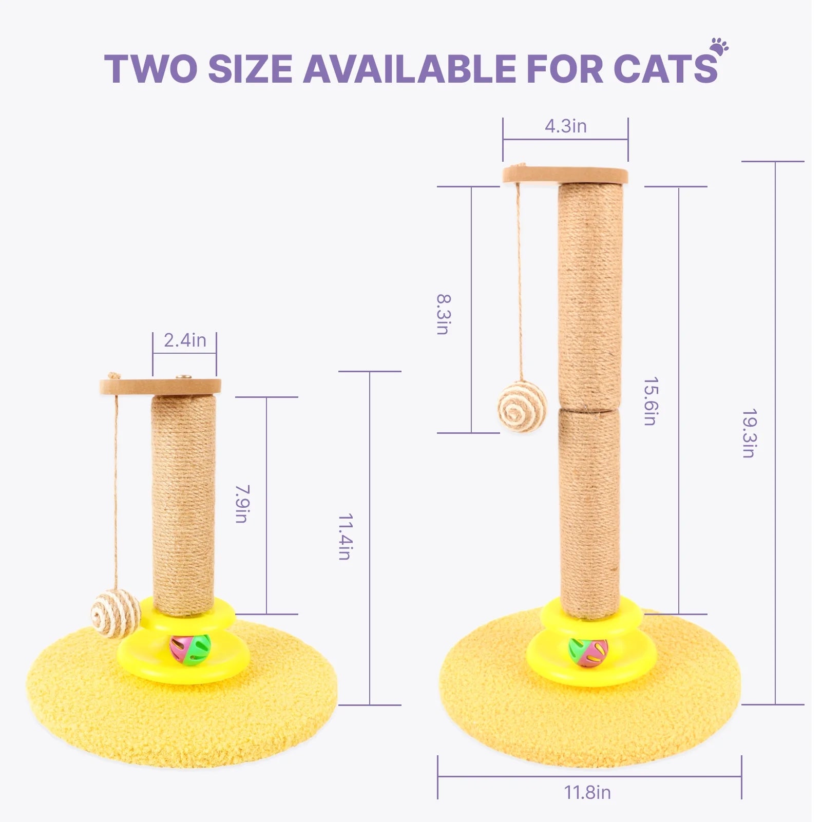 Cat Post, 19.3 Inch Tall Cat Scratching Post for Indoor Cats, Cat Scratcher Post with Dangling Ball and Bell Ball
